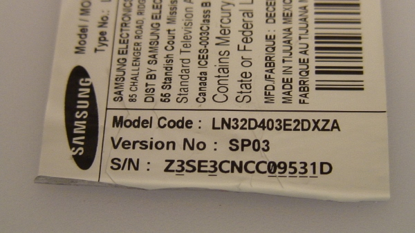 THIS PART PULLED FROM WORKING 32" SAMSUNG LCD TV, MODEL # LN32D403E2D, MODEL CODE : LN32D403E2DXZA