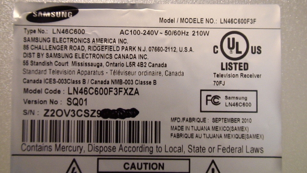 THIS PART PULLED FROM WORKING 46" SAMSUNG LCD TV, MODEL # LN46C600F3F, TYPE No : LN46C600, MODEL CODE: LN46C600F3FXZA, VERSION No: SQ01, UNIT WORKING COMPATIBLE ALL MODEL # BELOW.