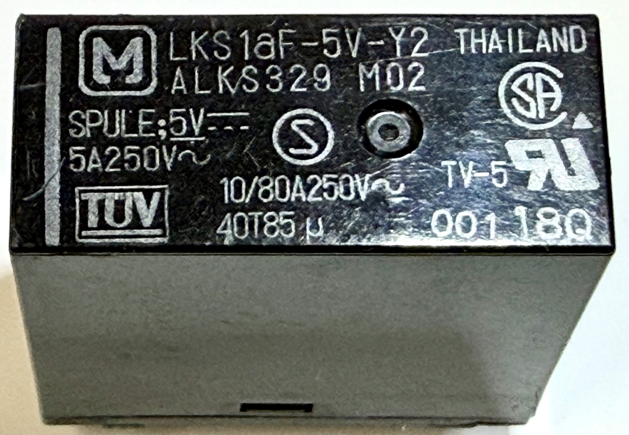 Manufacturer part number: LKS1AF-5V-Y2, ALKS329M02, Size: 25x25x10mm, Relay 5VDC 5A