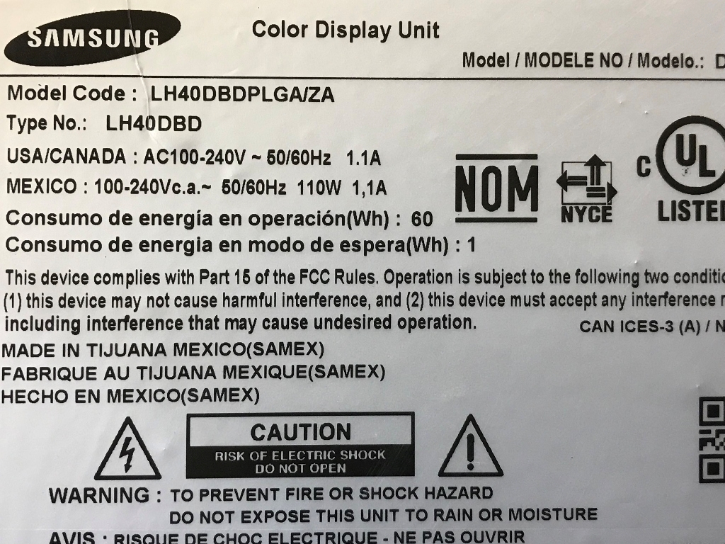 THIS PART WAS PULLED FROM SAMSUNG 40" LED TV, MODEL # LH40DBDPLGA/ZA, UNIT WORKING COMPATIBLE ALL MODEL # BELOW.