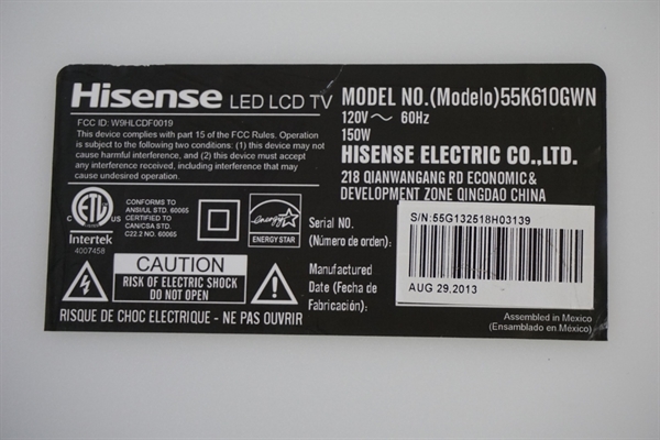 THIS PART WAS PULLED FROM HISENSE 55" LED TV, MODEL # 55K610GWN, UNIT WORKING COMPATIBLE ALL MODEL # BELOW.