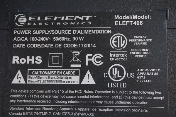 THIS PART WAS PULLED ELEMENT 40" LED TV, MODEL # ELEFT406.