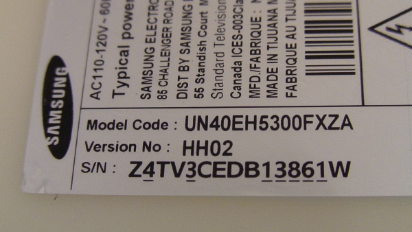 Manufacturer part number: LUMENS D3GE-400SMB-R2[13,07,10], LM41-00001W, SAMSUNG_2013SVS40_T2__3228N1_B2_12_REV1.5, DE400BGS-V1