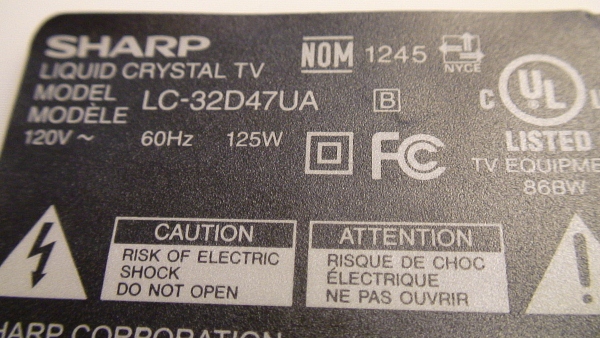 THIS PART PULLED FROM WORKING 32" SHARP LCD TV MODEL # LC-32D47UA,.