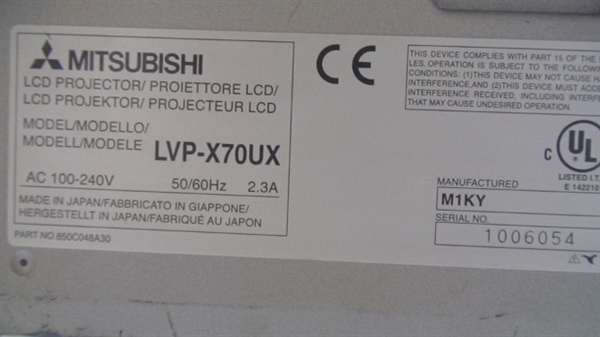 LVP-X70UX, MITSUBISHI LCD PROJECTOR LVP-X70UX, PROJECTOR