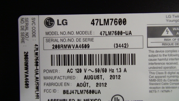 THIS PART PULLED FROM WORKING 47" LED 3D LG , MODEL # 47LM6700-UA, UNIT WORKING COMPATIBLE ALL MODEL # BELO