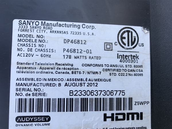 THIS PART WAS PULLED FROM SANYO 46" LCD MODEL # DP46812, UNIT WORKING COMPATIBLE ALL MODEL # BELOW.