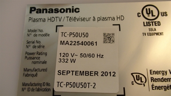 THIS PART WAS PULLED FROM PANASONIC 50" PLASMA TV, MODEL # TC-P50U50, SVC CODE # TC-P50U50T-2, UNIT WORKING COMPATIBLE ALL MODEL # BELOW.