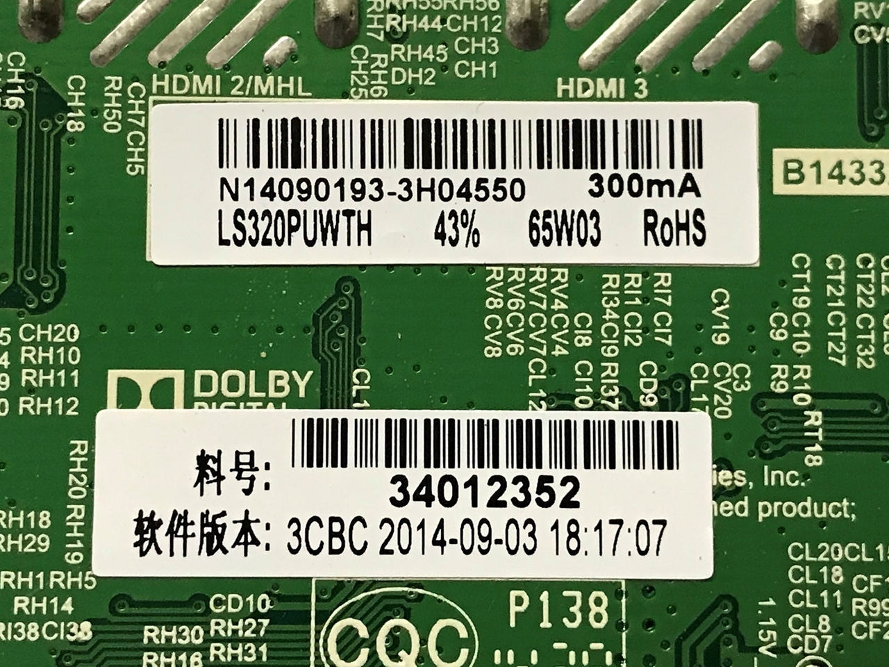 Manufacturer part number: N14090193-1H06748, 34012352, TP.MS3393.P85, LK315T3HB94