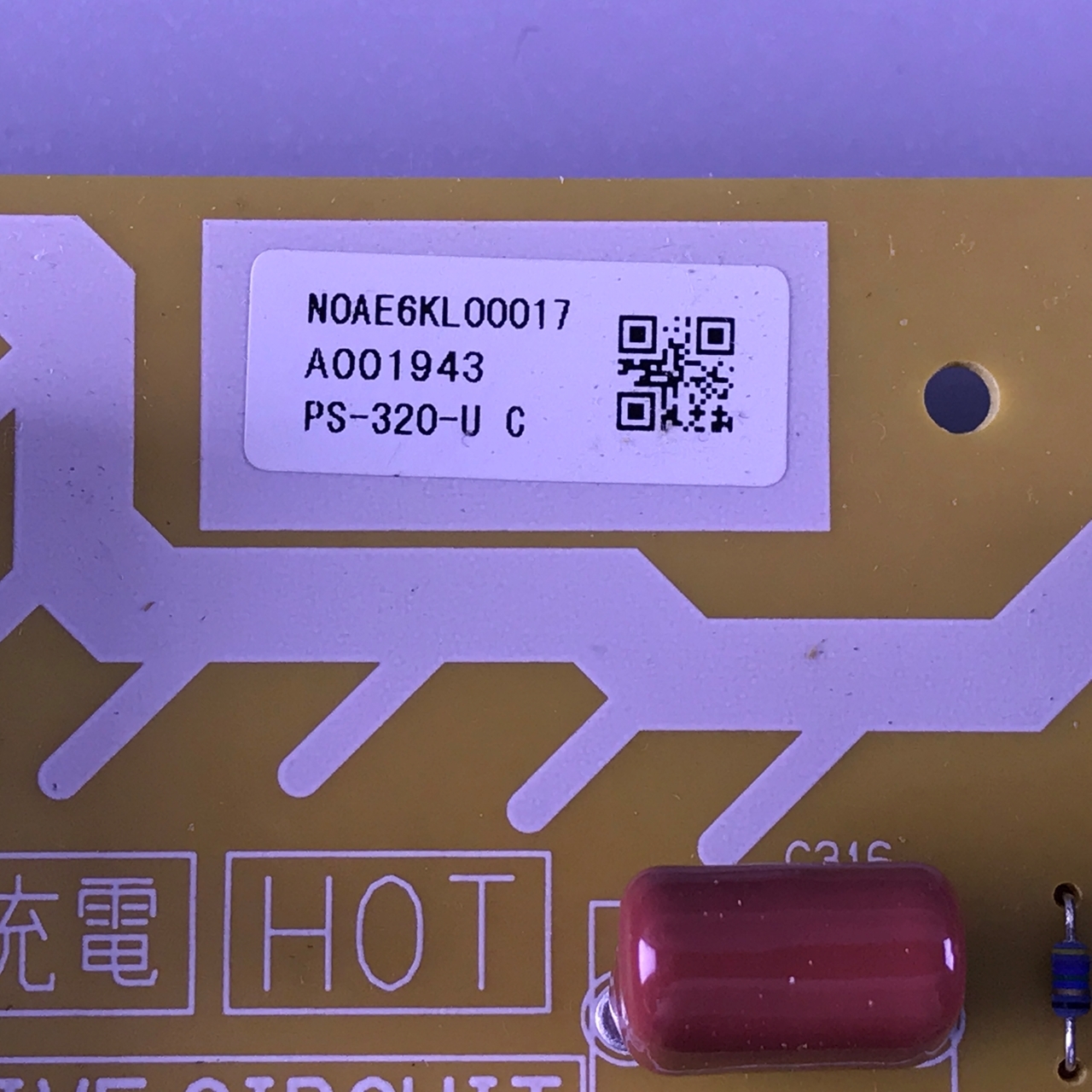 Panasonic 50" Plasma TV Power Supply Board: N0AE6KL00017, NOAE6KL00017, PS-320-U, TC-P50GT50, TCP50GT50-2