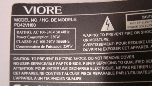 THIS PART WAS PULLED FROM VIORE 42" PLASMA TV MODEL # PD42VH80.
