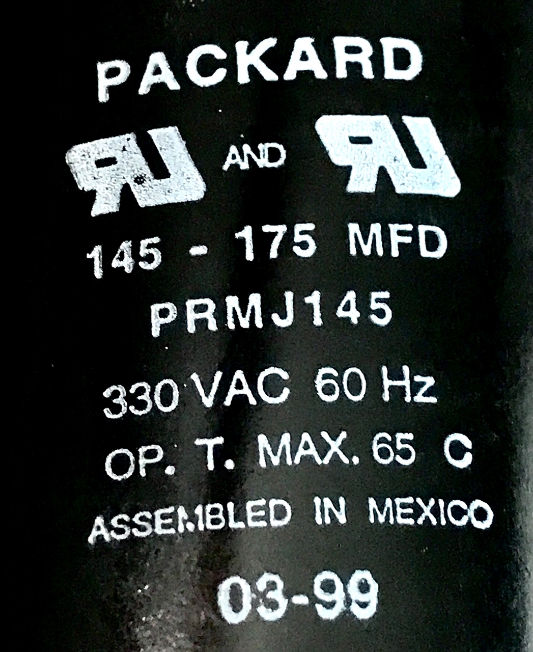 Manufacturer part number: PRMJ145, 145-174MFD 330VAC, 145-174UF 330V, 145-174MF 330V, 145-174MFD330VAC