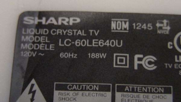 Manufacturer part number: QCNW-M504WJQZ, LC-60LE640, LC-60LE640U
