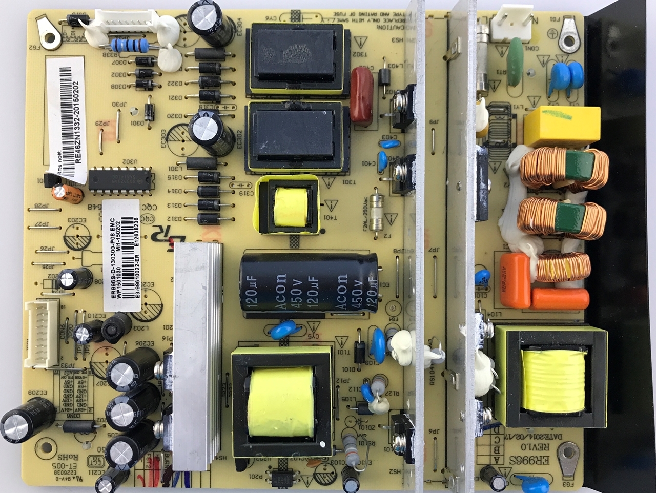 RCA 50" LED TV Power Supply Board: RE46ZN1332, ER996S-D-130300-P08, ER996S, SG3525AN, JCS830F, JCS4N65FB, AS324M-E1, LED50B45RQ, LRK50G45RQ