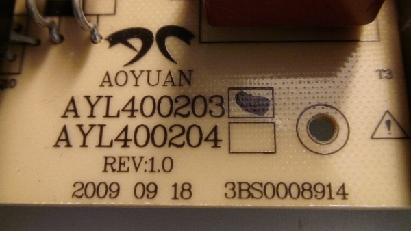 POWER SUPPLY, 3BS0008914, AYL400203, AYL400204, (THIS UNIT WORKING FOR PANEL T400HW01 V.5A) ,UNIT FULL FUNCTION TESTED, (100% WORKING CONDITION).
