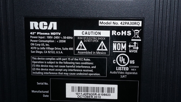 THIS PART WAS PULLED FROM RCA PLASMA TV 42", MODEL # 42PA30RQ, UNIT WORKING COMPATIBLE ALL MODEL # BELOW.