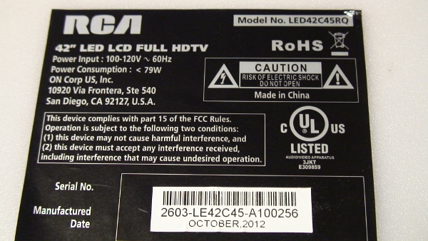 THIS PART PULLED FROM 42" RCA LED TV, MODEL # LED42C45RQ.