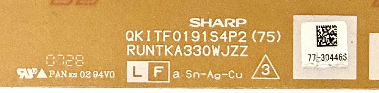 Manufacturer part number: RUNTKA330WJZZ, RUNTKA330WJN1, QKITF0191S4P2(75), QKITF0191S4P2, LC-52D64U, TL-M5200