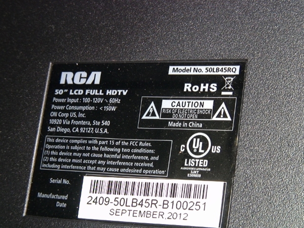 THIS PART WAS PULLED RCA 50" LCD, MODEL # 50LB45RQ.