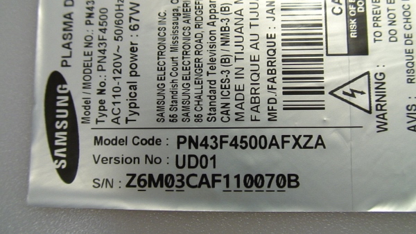 - Samsung 43" Plasma TV LVDS Ribbon Cable Model # PN43F4500AFXZA