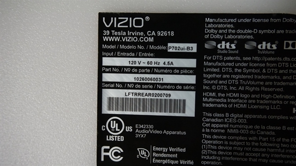 THIS PART WAS PULLED FROM VIZIO 70" LED TV MODEL # P702UI-B3.
