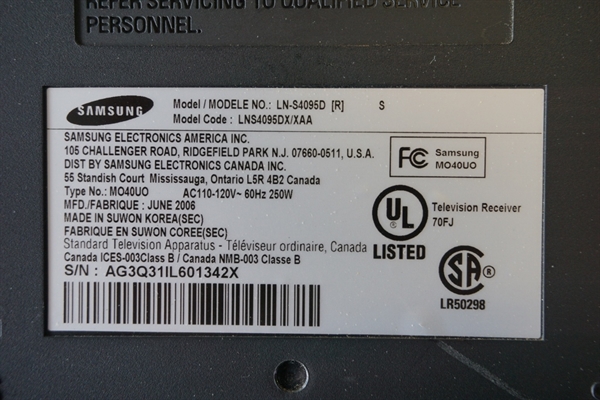 SAMSUNG LCD TV Speaker: BN96-03271A, BN96-03272A, LNS4095DX/XAA, LNS4096DX/XAA, LNS3296D, LNS4095D, LNS4095DX/XAA, LNS4096D, RS261MDWP/XAA