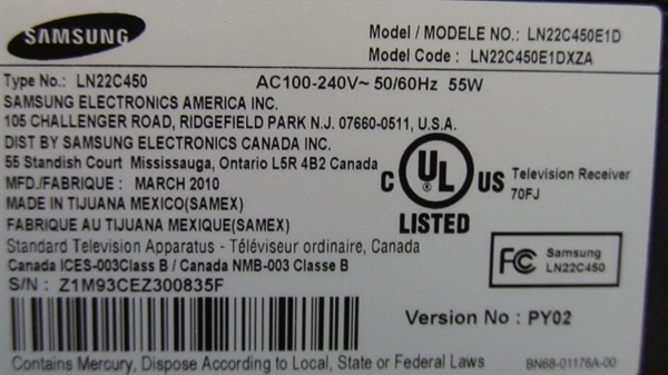 The Samsung LN22C450 22-inch LCD television presents the best of entertainment for you and your family. The dynamic contrast ratio of 15,000:1 in this Samsung 22-inch television delivers lifelike pictures with deeper blacks and illuminated whites. The Wide Color Enhancer in this Samsung LCD television ensures that each of the colors is produced in its natural tone. Featuring a resolution of 1366 x 768, the Samsung LN22C450 television produces true-to-life images. The Dolby Digital Plus in this Samsung 22-inch television helps in delivering a sonorous sound for creating a true cinematic atmosphere in your house. This slim and sleek Samsung LCD television is further endowed with a Touch of Color Design, highlighting the bezel-edges with a glossy red color. You can view your favorite TV programs, movies, etc., as this Samsung LN22C450 is equipped with NTSC/ATSC/Clear QAM Cable.