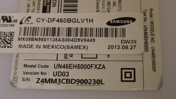 THIS PART PULLED FROM WORKING SAMSUNG 46" LED MODEL # UN46EH5000, MODEL CODE: UN46EH5000F, VERSION No; UD03 UNIT WORKING COMPATIBLE ALL MODEL # BELOW.