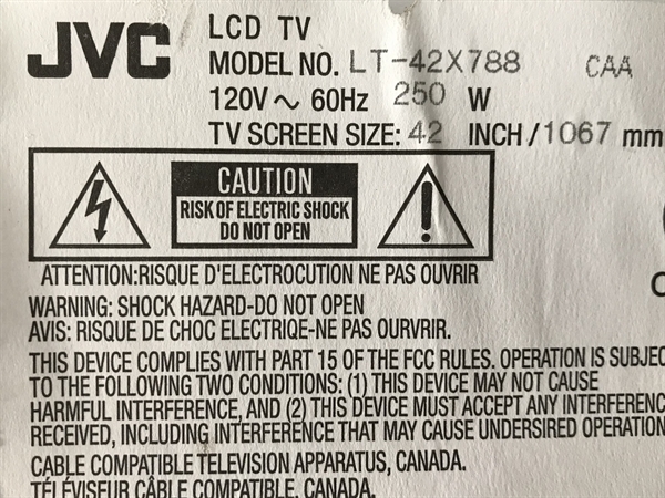 THIS PART WAS PULLED FROM JVC 42" LED TV, MODEL # LT-42X788.