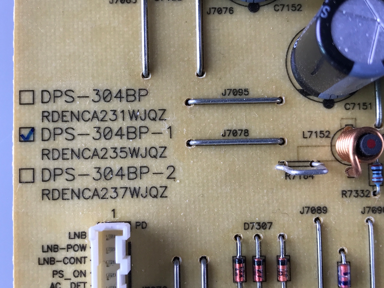 Sharp 52" LCD TV Power Supply; RDENCA235WJQZ, RDENCA231WJQZ, RDENCA237WJQZ, DPS-304BP-1, DPS-304BP, DPS-304BP-2, LC-52D64U, LC-42D64U, LC-46D64U, LC-46LE810UN, LC-46SB54U, LC-46SB57UN, LC-46SE941U, LC-46SE94U, LC-52D64U, LC-52SB57UN, LC-52SE941U, LC-52SE94U, LC-C4254U, LC-C4654U