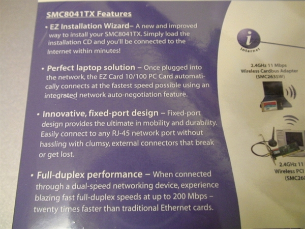 SMC8041TX, EZ CARDTV 10/100 MBPS PC CARD, SMC NETWORKS, EZ175