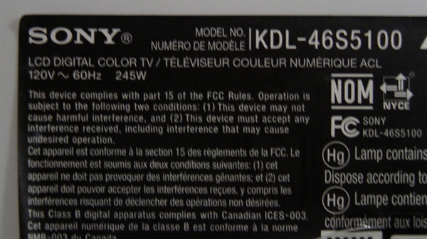 - Sony 46" LCD TV T-Con Board Model # KDL-46S5100