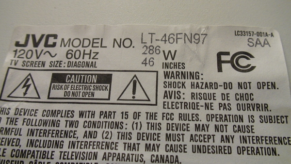 THIS PART WAS PULLED FROM JVC 46" LCD MODEL # LT-46FN97, UNIT WORKING COMPATIBLE ALL MODEL # BELOW.