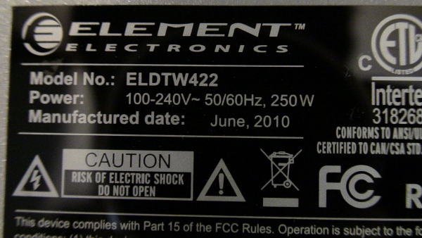 THIS PART PULLED FROM WORKING 42" ELEMENT LCD TV, MODEL # ELDTW422,.