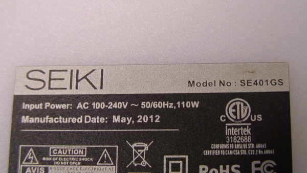 THIS WAS PART PULLED FROM SEIKI 40" LED TV, MODEL # SE401GS.