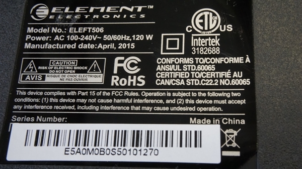 THIS PART PULLED FROM WORKING 50" ELEMENT LED TV MODEL # ELEFT506.