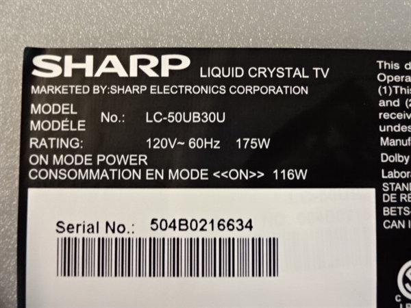 THIS PART WAS PULLED FROM SHARP 50" LED MODEL # LC-50UB30U.