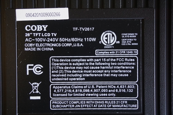 THIS PART WAS PULLED FROM DAMAGE 26" COBY LCD TV MODEL # TF-TV2617.
