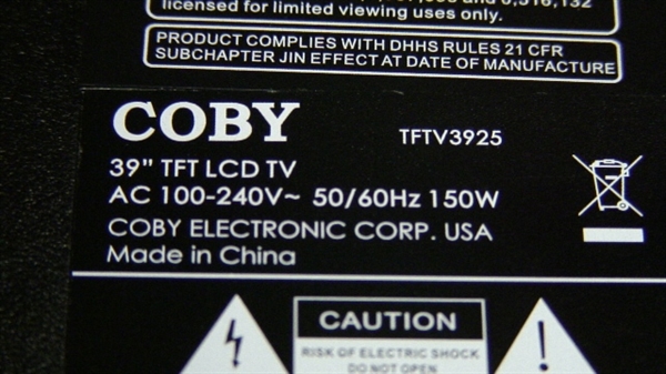 THIS PART WAS PULLED FROM 39" COBY LCD TV, MODEL # TFTV3925.