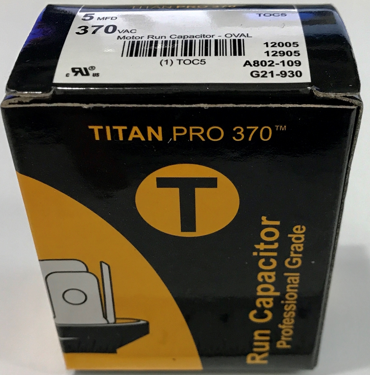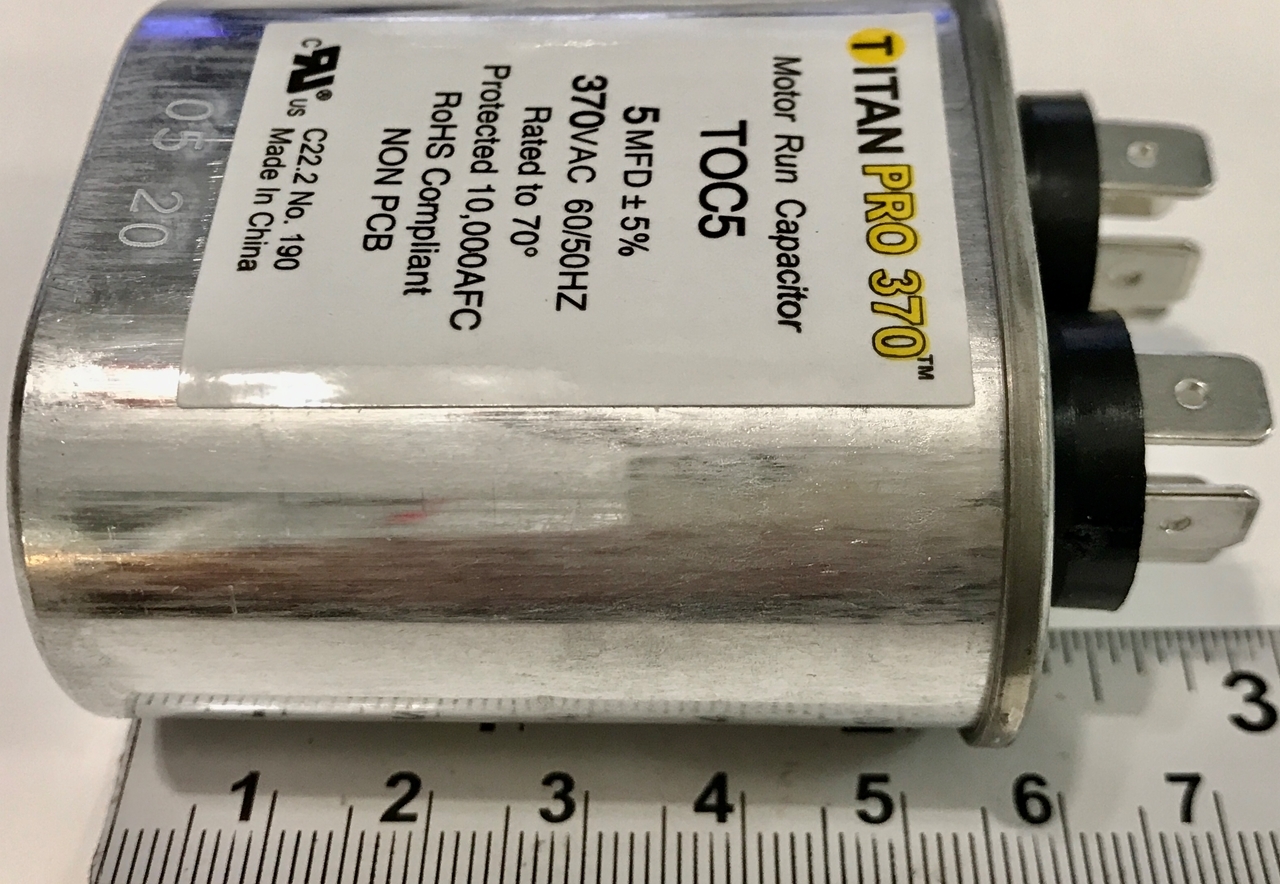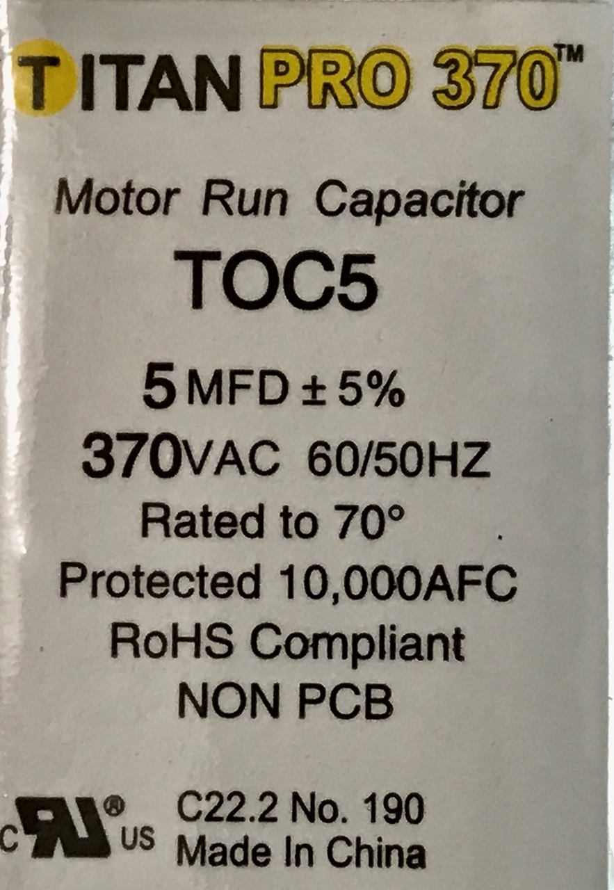 - TITAN PRO 370 Run Capacitor, 5MFD 370VAC, 5UF 370VAC, 5Mf 370VAC, TOC5, G21-930