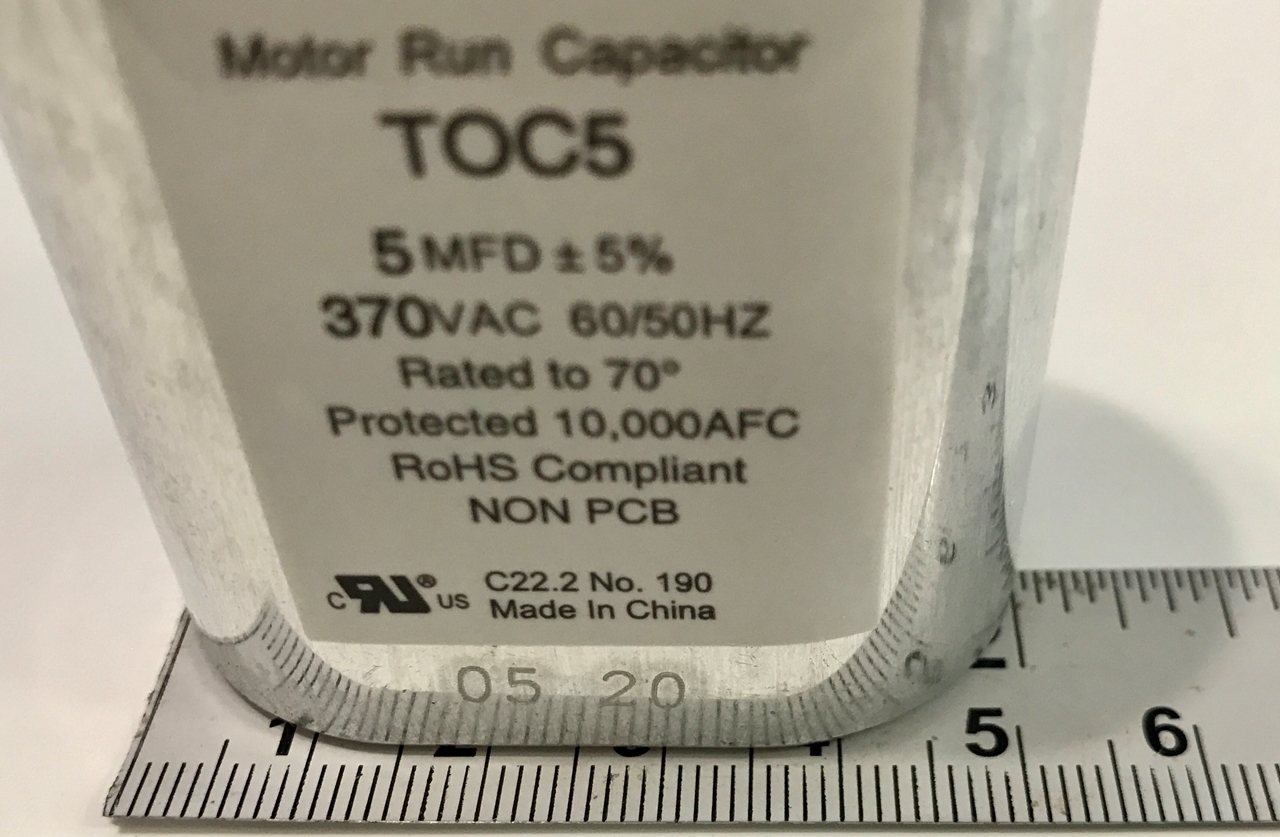 Titan Pro 370 Motor Run Capacitor, 5MFD 370VAC, 5UF 370VAC, 5Mf 370VAC, TOC5, G21-930