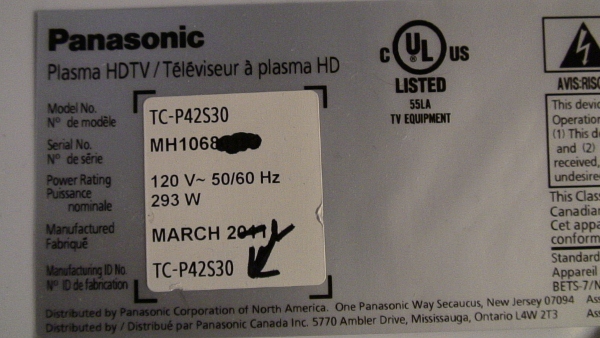 THIS PART PULLED FROM WORKING 42" PANASONIC PLASMA TV, MODEL # TC-P42S30, THIS PARTS WORKING COMPATIBLE WITH ALL MODEL # BELOW.