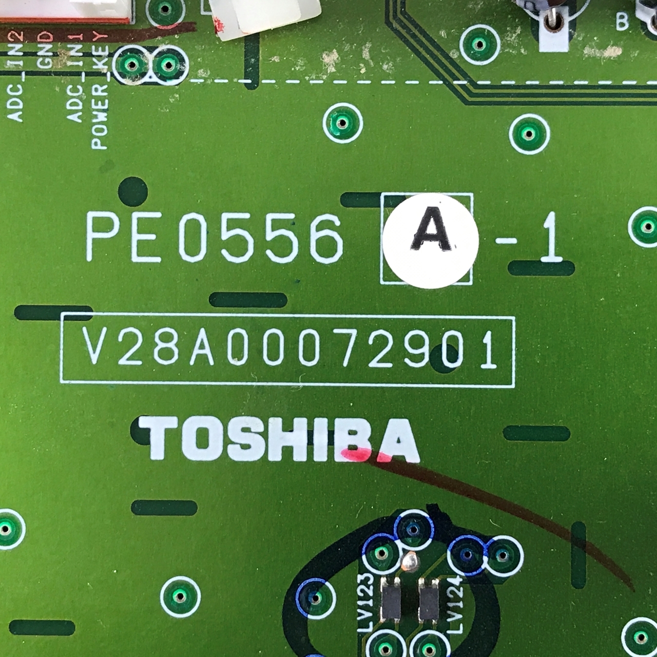 Manufacturer part number: Toshiba 46" LCD TV AV Board: 75011024, V28A00072901, PE0556A-1, PE0556A1, PE0556, AN5832SA, TB1328FG, NJW1180AF, TMP91FY42FG, ENG36E02KF, 46XF550U, 46XV540U, 40XF550U, 46XF550U, 52XF550U