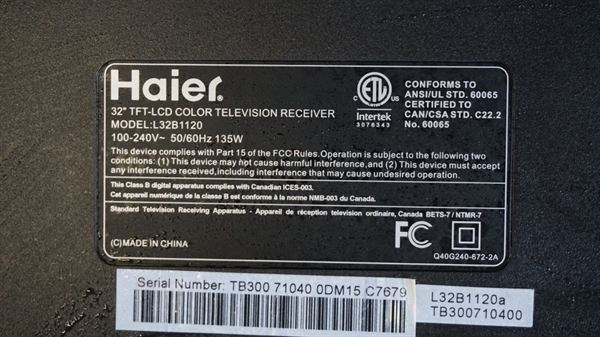THIS PART WAS PULLED FROM HAIER 32" LCD TV, MODEL # L32B1120, UNIT WORKING COMPATIBLE ALL MODEL # BELOW.