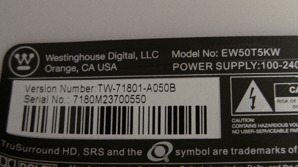 THIS PART WAS PULLED FROM WESTINGHOUSE 50" LED TV, MODEL # EW50T5KW.