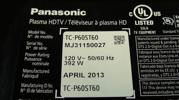 THIS PART PULLED FROM 60" TV PANASONIC PLASMA TV, MODEL # TC-P60ST60, UNIT WORKING COMPATIBLE ALL MODEL # BELOW.