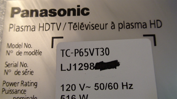 THIS PART PULLED FROM WORKING 65" PANASONIC PLASMA TV, MODEL # TC-P65VT30.