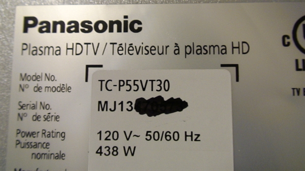 THIS PART PULLED FROM WORKING 55" PANASONIC PLASMA TV, MODEL # TC-P55VT30,.