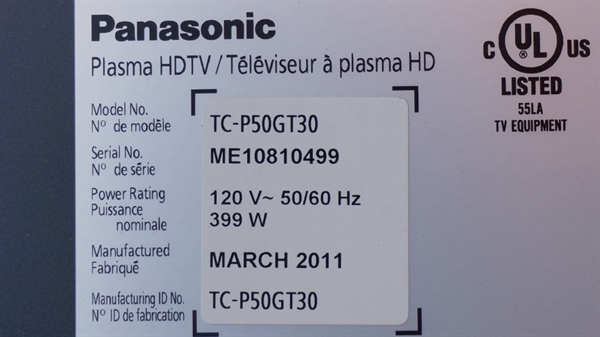 THIS PART WAS PULLED FROM WORKING PANASONIC 50" PLASMA TV, MODEL # TC-P50GT30, UNIT WORKING COMPATIBLE ALL MODEL #BELOW.