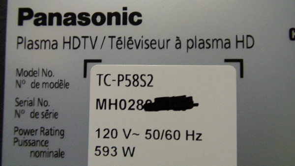THIS PART PULLED FROM 58" PANASONIC PLASMA TV, MODEL # TC-P58S2, UNIT WORKING COMPATIBLE ALL MODEL # BELOW.